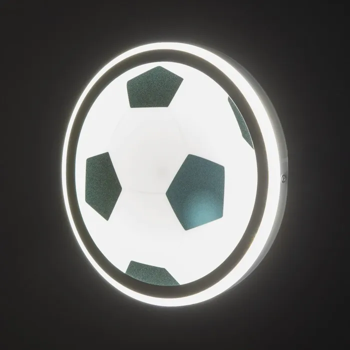 - Дизайн как призыв к игре: Плафон повторяет классическую раскраску футбольного мяча – белый и чёрный фрагменты на круглой поверхности диаметром 30 см. Такой светильник сразу привлекает внимание, особенно мальчиков от 5 до 12 лет, увлекающихся спортом.