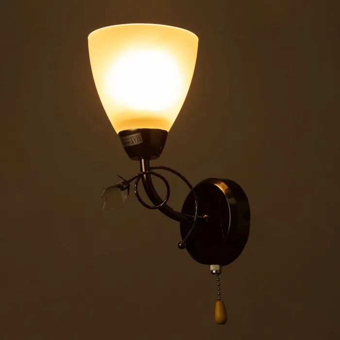 Настенный светильник с чёрным основанием и стеклянным плафоном станет стильным акцентом в вашем интерьере. Его лаконичный дизайн в стиле минимализм подойдёт для гостиных, спален, кухонь или прихожих, создавая уютную атмосферу и мягкое освещение.
