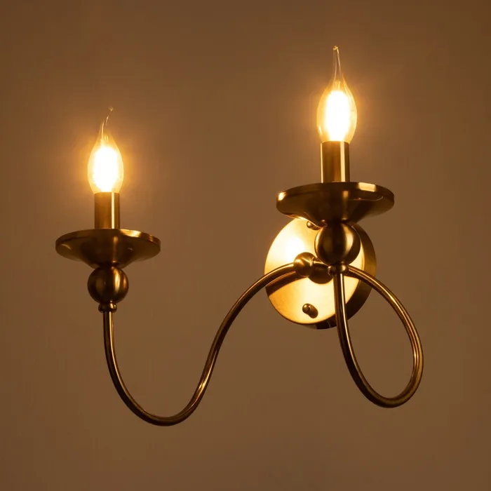 Свет, вдохновлённый классическими традициями! Бра с двумя лампами и бронзовым дизайном под свечи — это элегантное освещение для тех, кто ценит роскошь, историю и утончённость. Подходит для гостиной, спальни, офиса, прихожей или коридора.