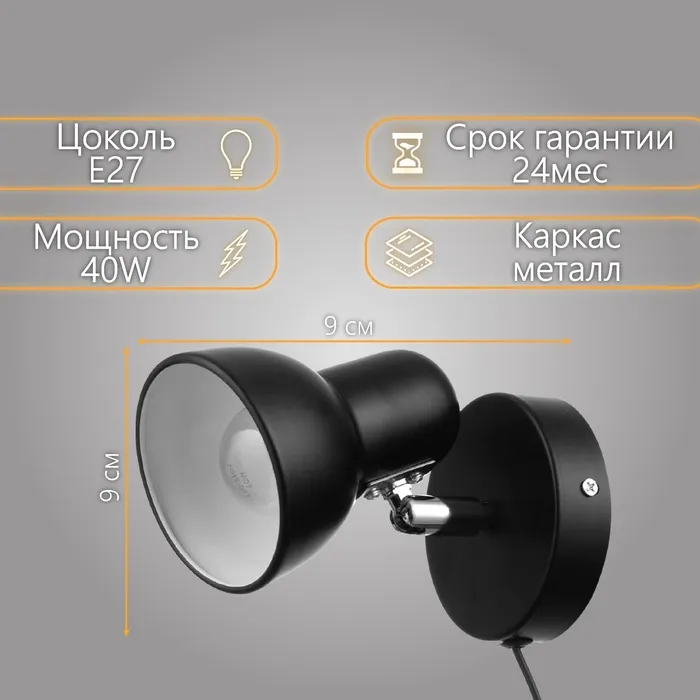 Бра с проводом "Севантос" Е27 40Вт черный 9х9х14 см — Характеристики