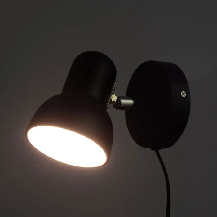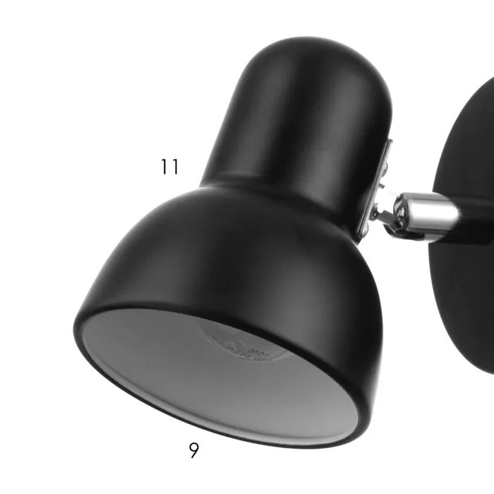 - Современный дизайн: Черный металлический плафон с матовой поверхностью подойдет для интерьеров в стиле модерн, хай-тек или минимализм. Компактные размеры (9×9×14 см) позволяют разместить светильник даже в небольших помещениях.