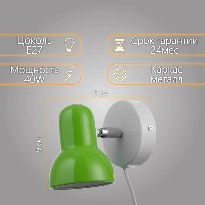 Бра с проводом "Севантос" Е27 40Вт зеленый 9х9х14 см — Характеристики