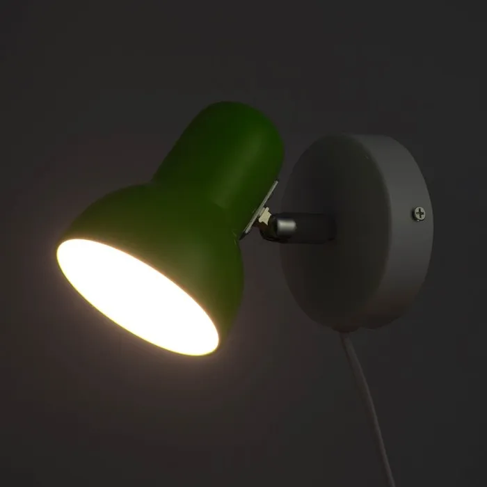 - Природная эстетика: Зеленый металлический плафон привносит в интерьер ноту свежести. Компактные габариты (9×9×14 см) позволяют органично вписать светильник даже в небольшие зоны.