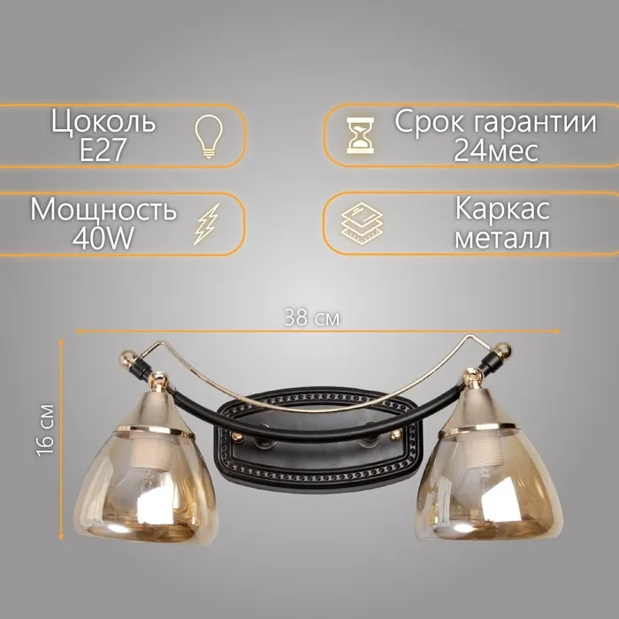 Бра "Солара" 2х14 40Вт черный 38х20х16см — Характеристики