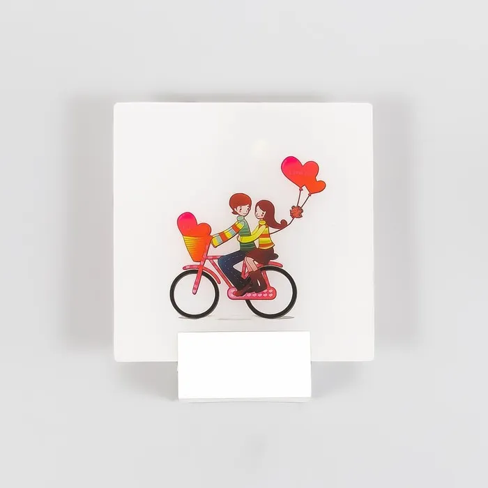 - Оригинальный дизайн: Белый металлический корпус и квадратный плафон с изображением влюбленной пары создают игривый образ, который легко впишется в интерьер детской комнаты или спальни. Такое бра станет изюминкой пространства, добавляя нотку приключений и романтики.