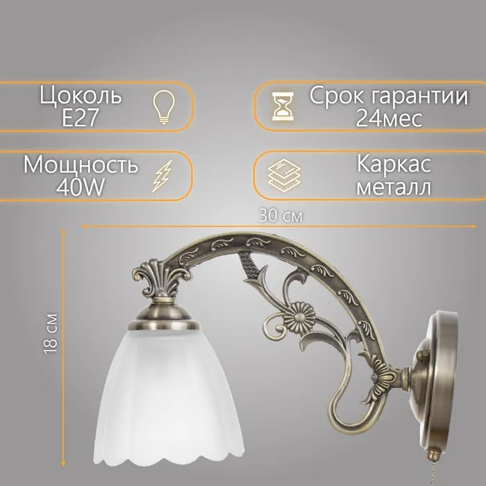 Бра "Жасмин" Е27 40Вт бронза 10х30х18 см 10х30х18 см — Характеристики