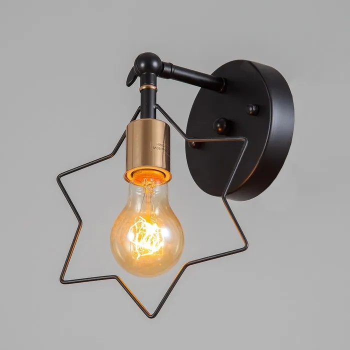 - Лофт-стиль: Черный металлический корпус с фигурным рассеивателем в виде звезды создает яркий акцент в интерьере. Такое бра легко впишется в помещения в стиле лофт, модерн или минимализм, добавляя нотку креативности.