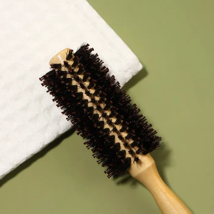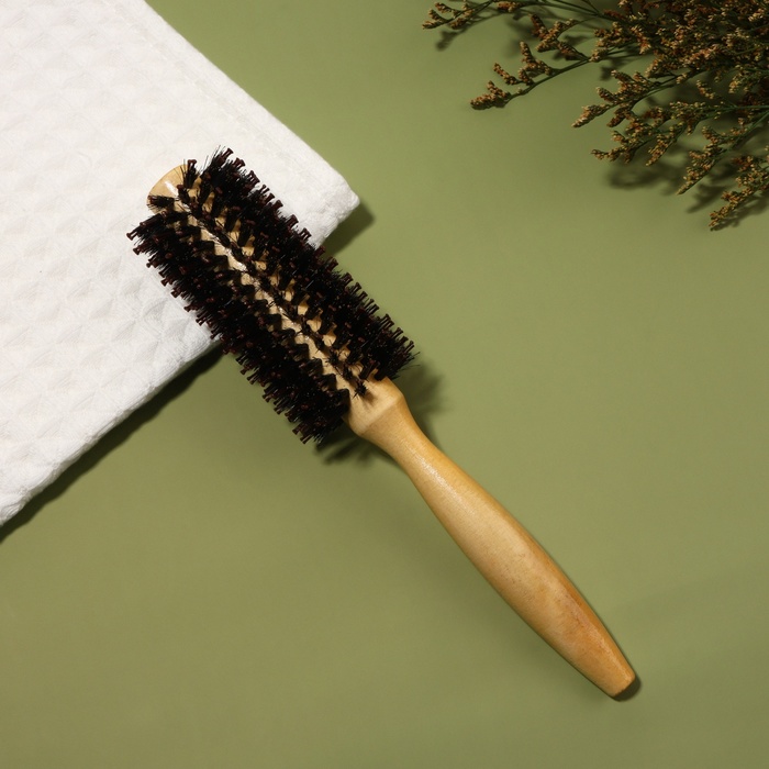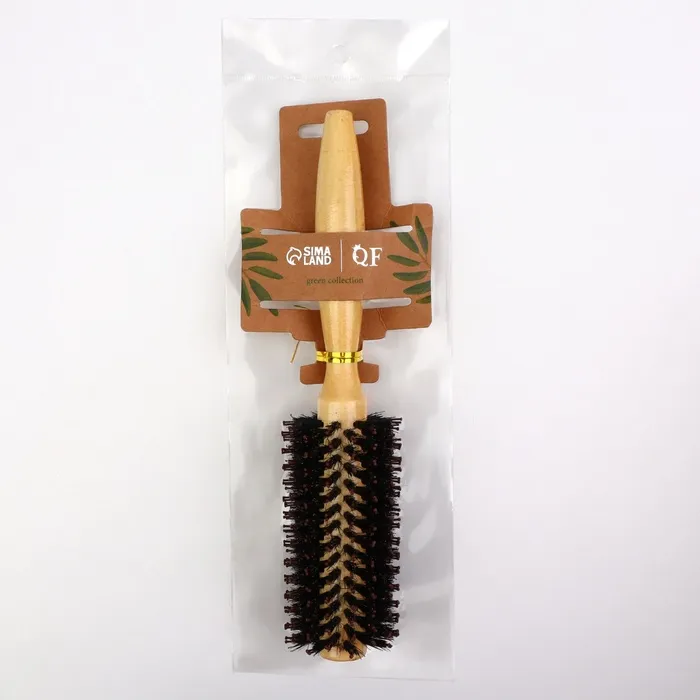 Деревянная круглая щетка с натуральной щетиной - ваш помощник для бережного ухода и легкой укладки. Благодаря оптимальному диаметру 5 см она идеально подходит для создания объема у корней и мягких волн на волосах средней длины.