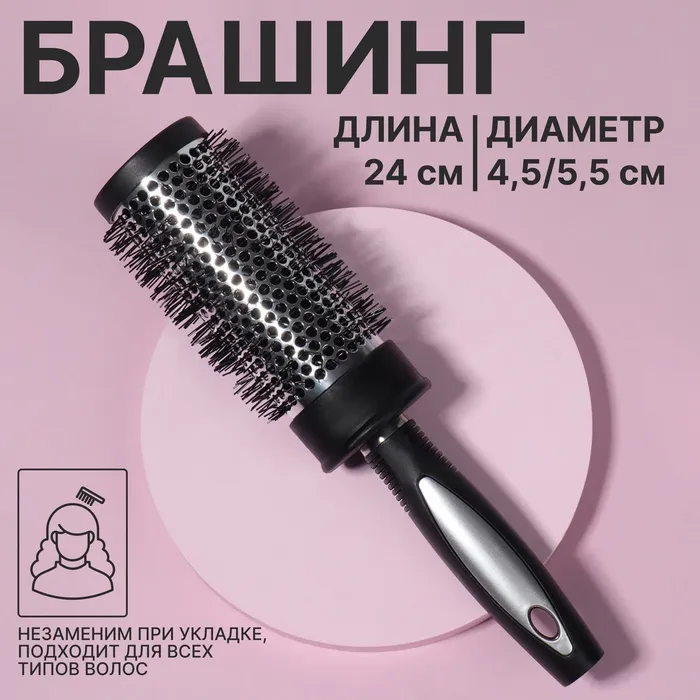 Брашинг для волос, продуваемый, d=45/55 мм, 24 см, чёрный — Характеристики