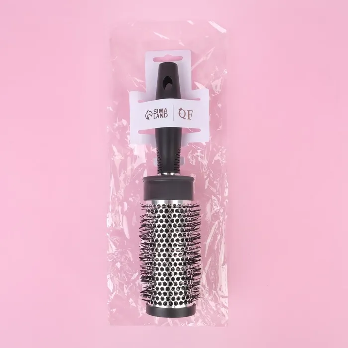 Щетка востребована в салонах — выдерживает интенсивное использование, сохраняя первоначальные свойства. Черный цвет корпуса выглядит стильно и практичен в работе.