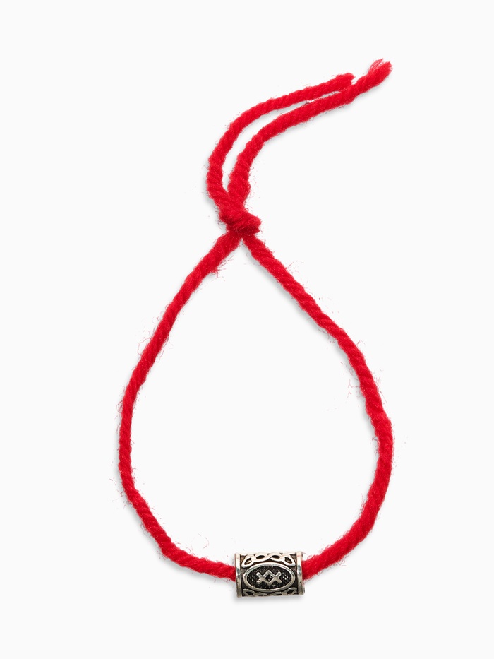Браслет-амулет на нити «Красная нить» руна семья, красный с чернёным серебром, 30 см — Характеристики