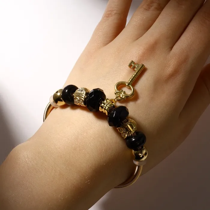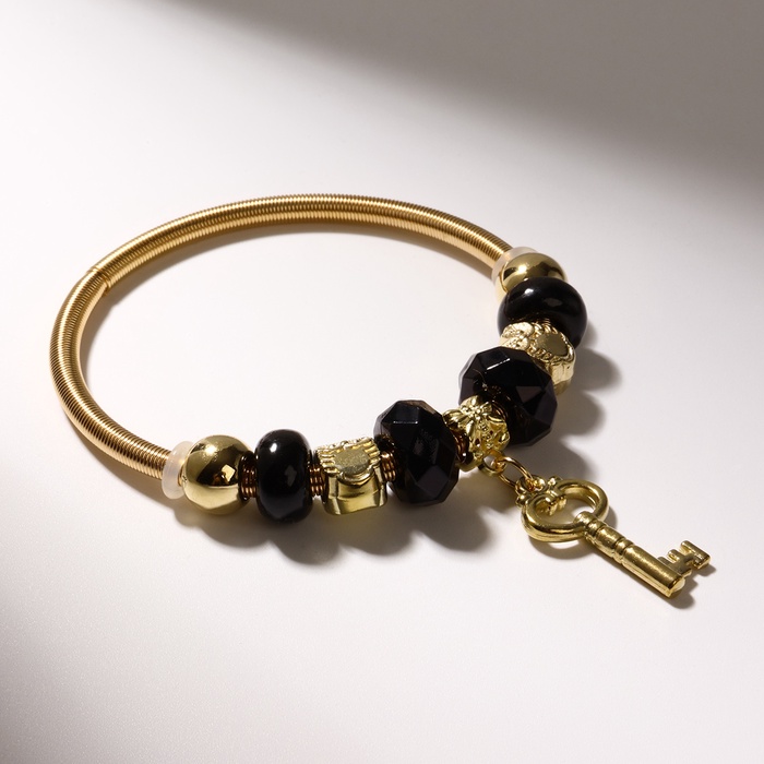 Браслет ассорти «Марджери» ключ, цвет чёрно-золотой в золоте, d=6,5 см — Характеристики