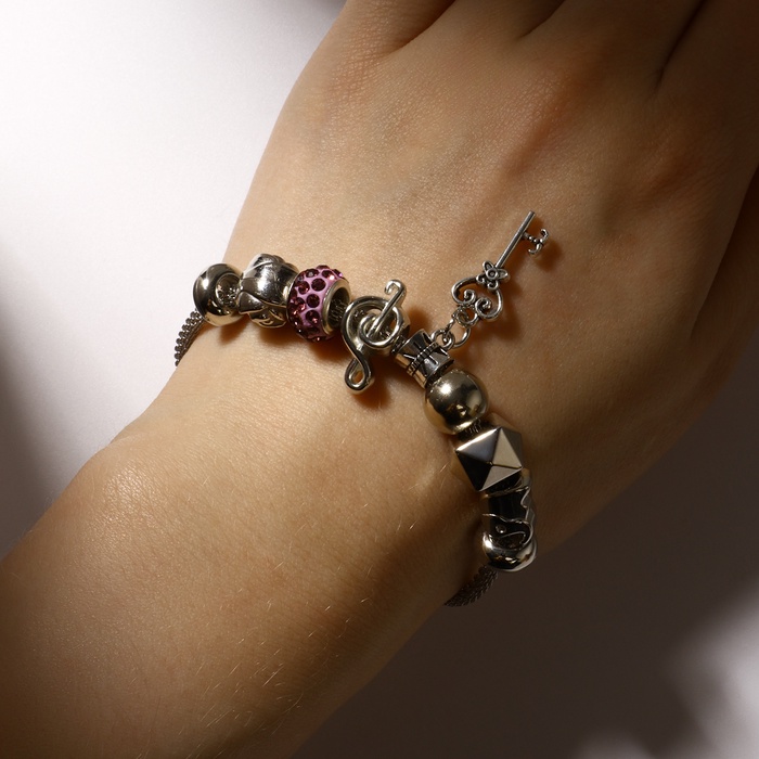 Браслет ассорти «Марджери» ключик, цвет фиолетовый в серебре,L=18см — Характеристики