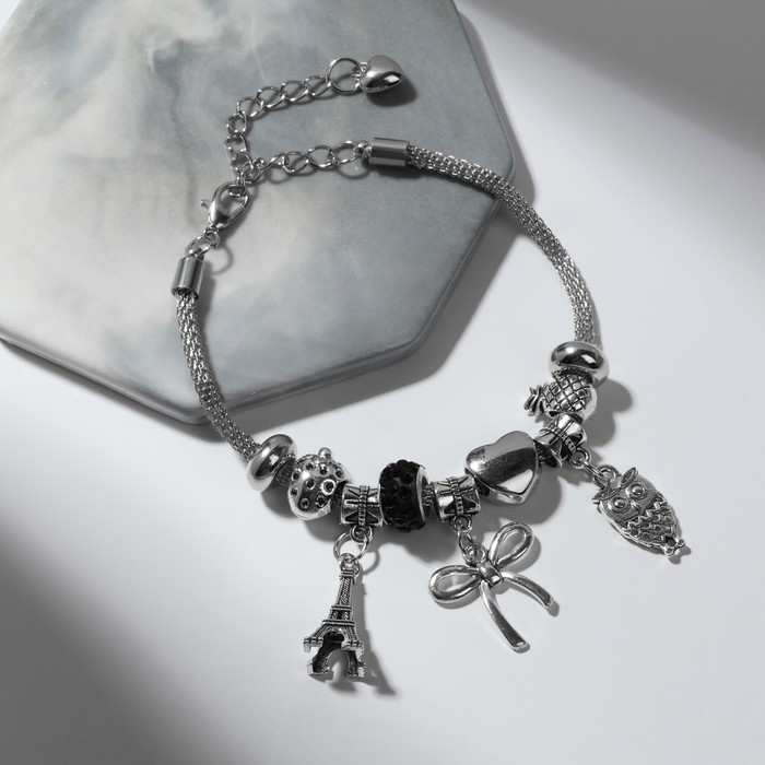Браслет ассорти «Марджери» романтик, сова, цвет чёрный в серебре, L=18 см — Характеристики
