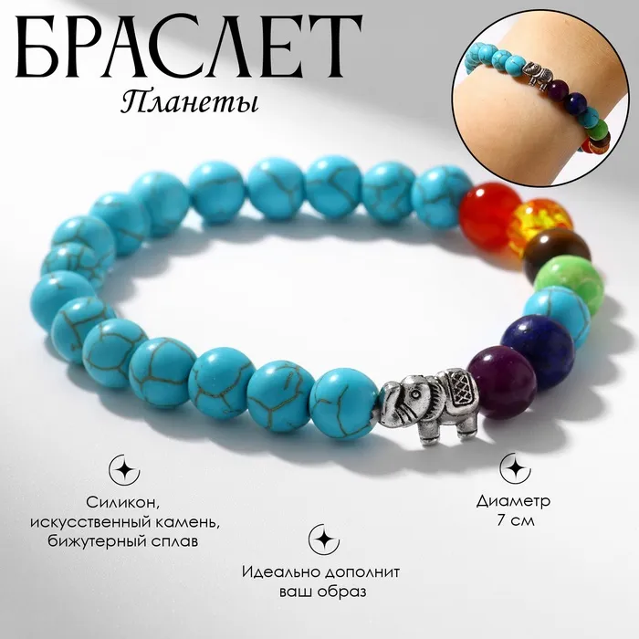 Браслет ассорти «Планеты» небо, цветной, d=7 — Характеристики
