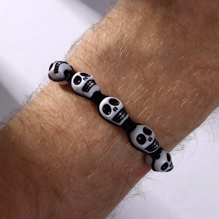 Браслет «Череп» мультяшный, цвет чёрно-белый, d=6 см — Характеристики