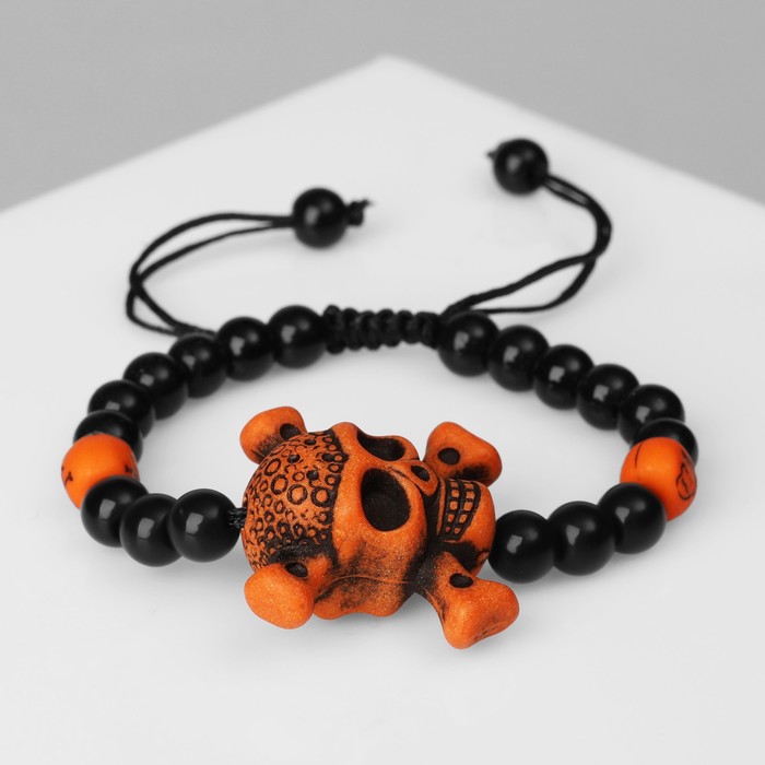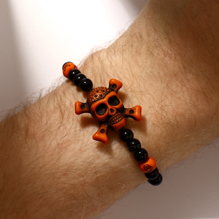Браслет с черепом и костями — этническое украшение, выполненное из текстиля, которое подчеркнет индивидуальность и стиль владельца. Его дизайн сочетает в себе элементы мрачной эстетики и оригинальности, делая его подходящим для мужчин, ценящих уникальные аксессуары. Размер 6 см обеспечивает комфортную посадку на запястье.