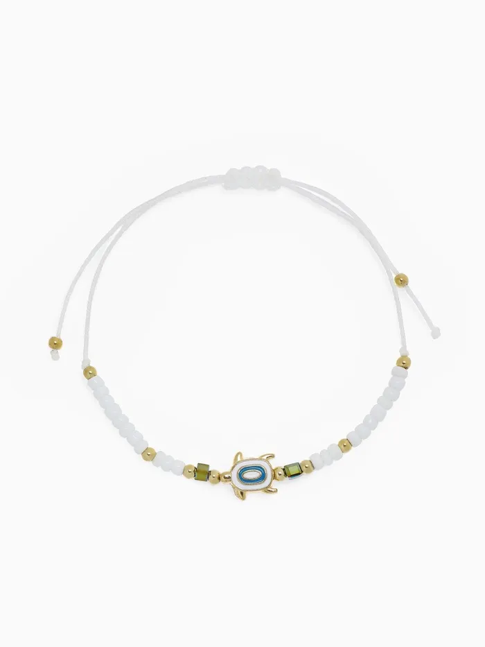 Браслет «Черепаха» на нити, нежность, белый в золоте