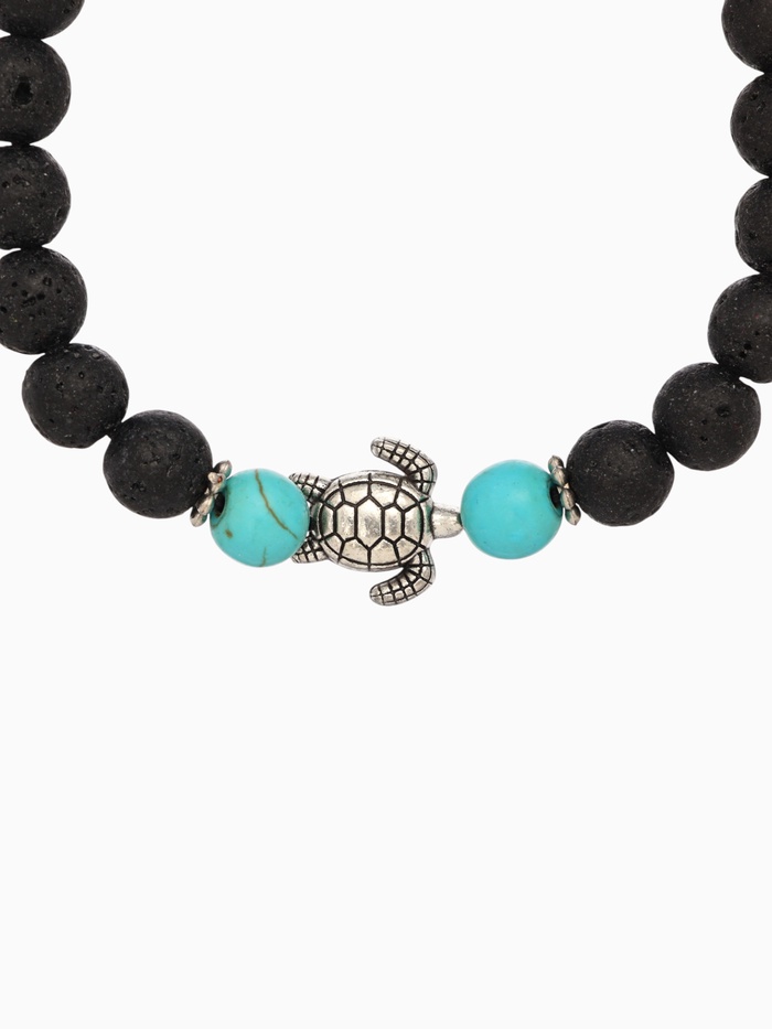 Вы надеваете браслет утром — он не мешает за клавиатурой, но мягко напоминает: не нужно спешить. Лава заземляет, пирит с бирюзовым отливом добавляет внутреннего света и отражает негатив. Черепашка на запястье — как тихий союзник в ритме дня: “ты на правильном пути”. Подходит для работы, прогулок или тихих вечеров — не как аксессуар, а как личный ориентир. Носится легко, снимается редко.