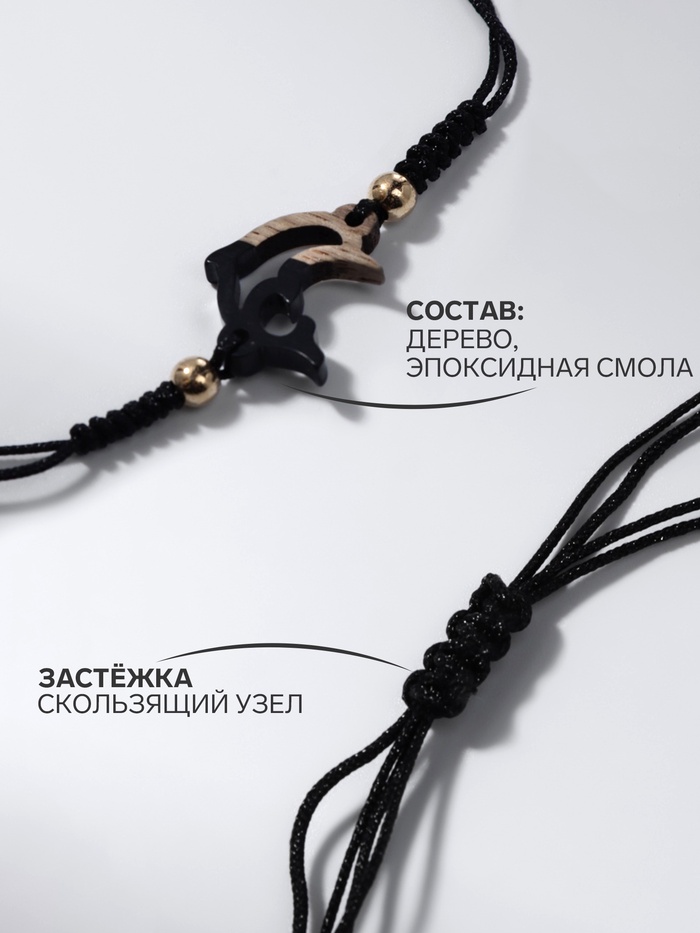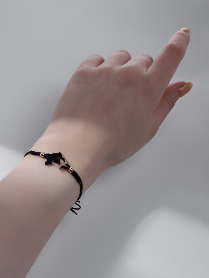 Браслет «Дельфинчик» на нити, на нити, чёрный в золоте — Характеристики