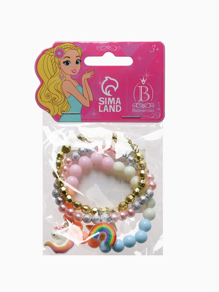 Браслет детский «Выбражулька», 3 шт. сияние, d=6 см. единорог, радуга, корона, цветной — Характеристики