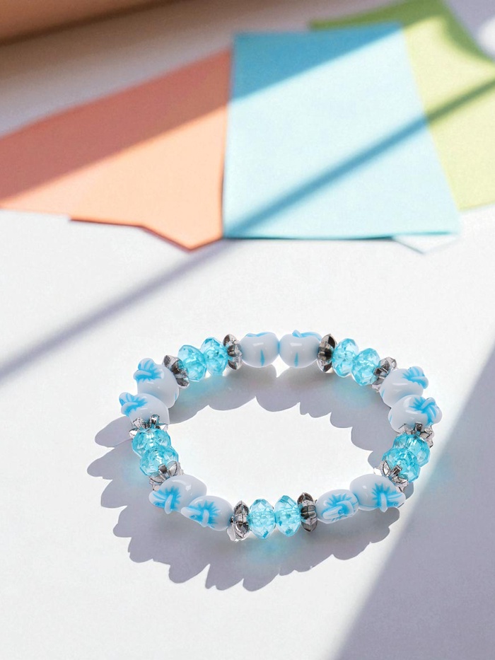 Этот браслет привлекает внимание своей лаконичностью и оригинальным дизайном, который подчёркивает детскую непосредственность и свежесть образа. Он подходит для повседневного использования и праздничных событий, дополняя любой наряд ярким акцентом.