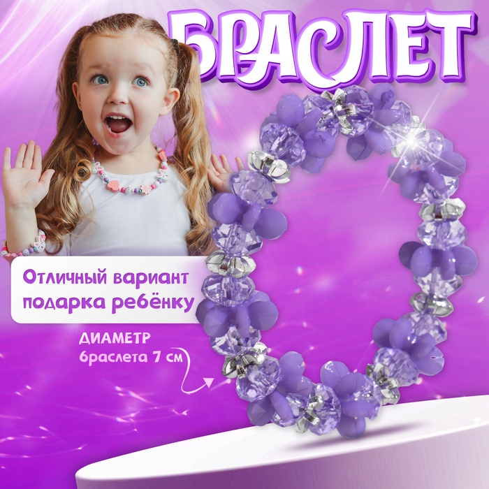 Детский фиолетовый браслет из бусин на пластиковой основе станет ярким дополнением образа девочки. Размер 7 см подходит для комфортного ношения, а отсутствие застёжки обеспечивает простоту использования и удобство.