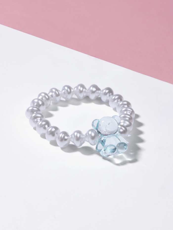 Браслет детский «Выбражулька» мармеладный мишка, d=6 см. жемчуг, белый с голубым — Характеристики