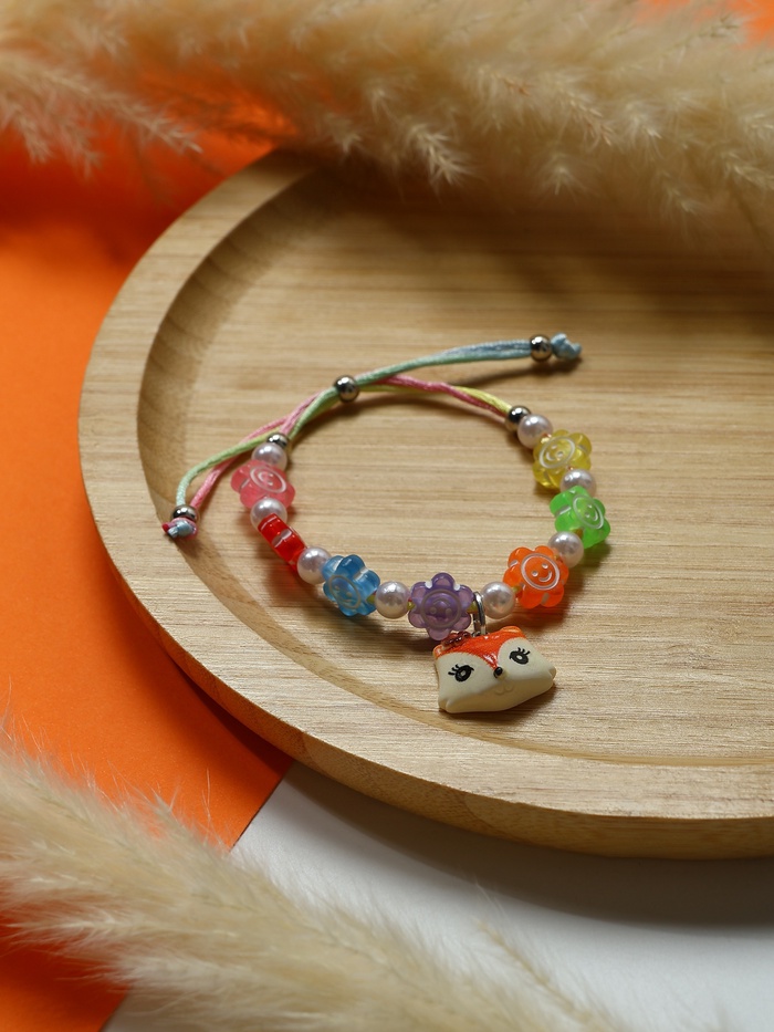 Браслет детский «Выбражулька» на затяжке, лиса с бусинами смайлы, цветной — Характеристики