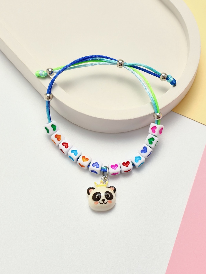 - Яркий и милый дизайн: панда и разноцветные бусины привлекают внимание и делают браслет настоящим украшением.