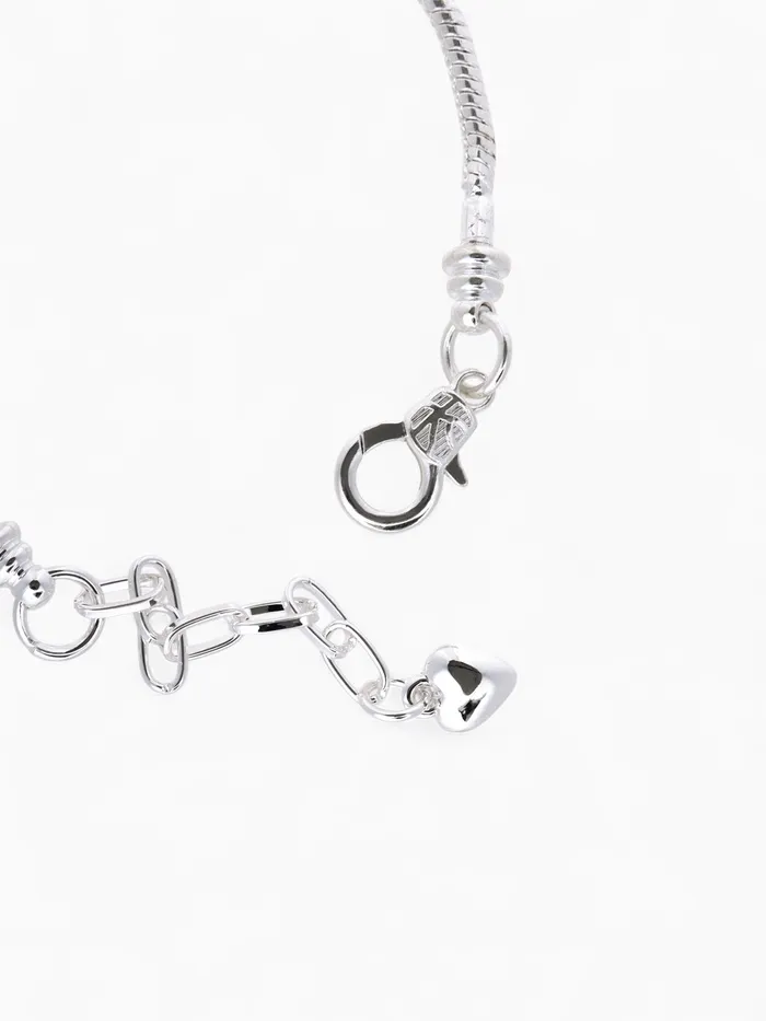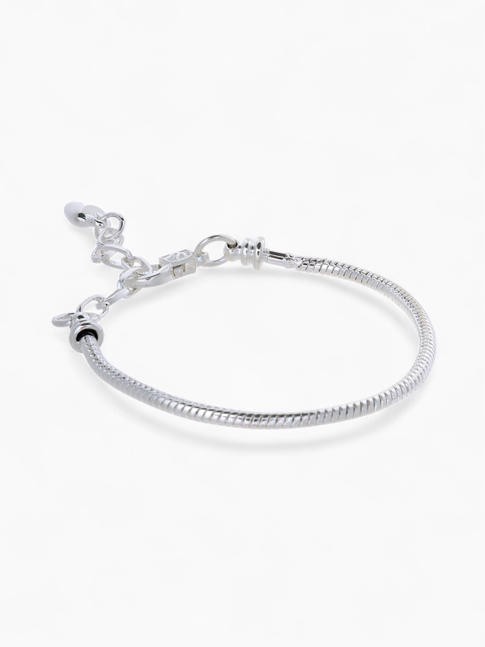 Браслет для шармов «Карабин», основа, цвет серебро, 17 размер + 5 см удлинитель — Характеристики