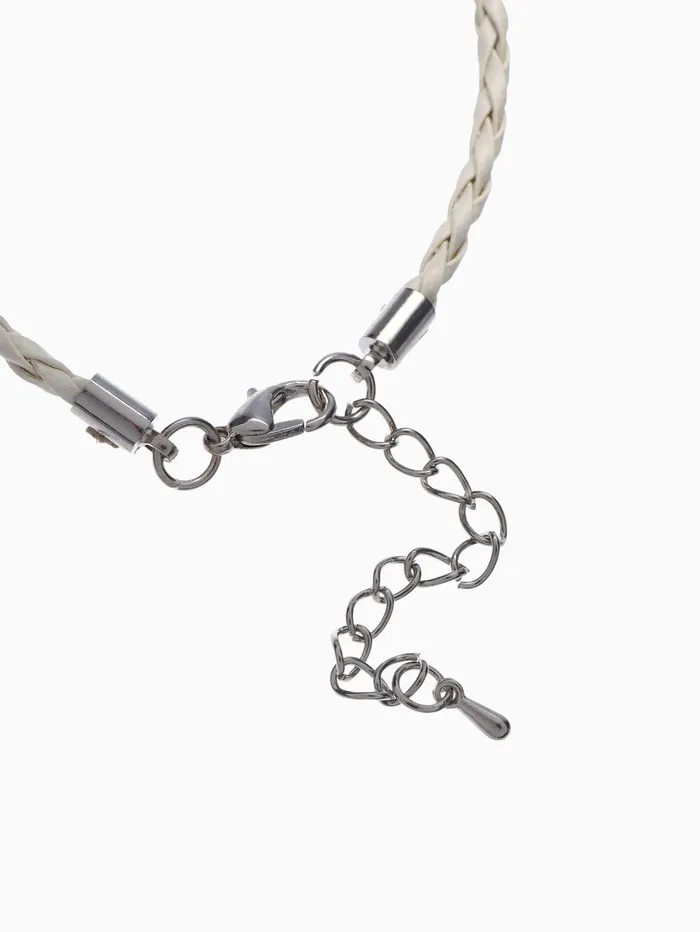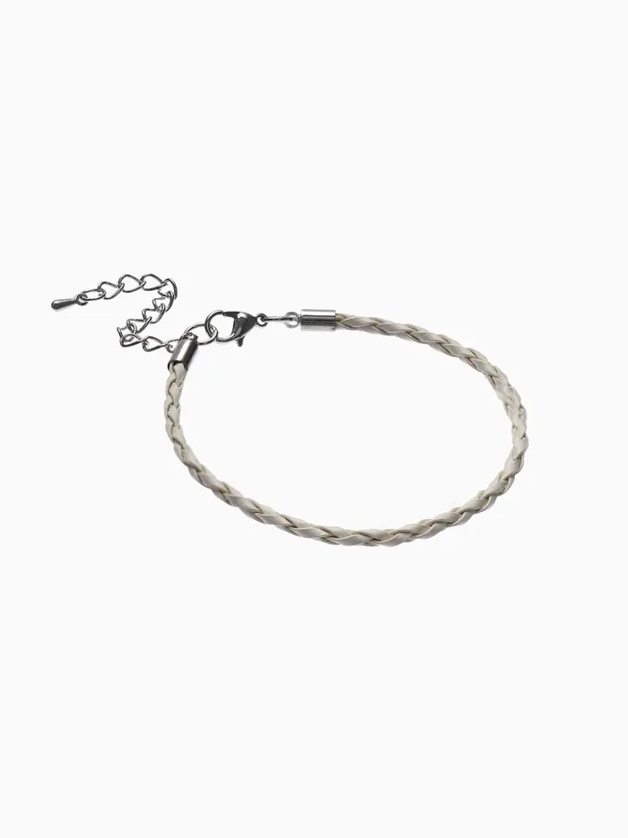 Представляем вашему вниманию изысканный аксессуар, который добавит шарма и стиля в любой образ — браслет с косичкой из вощёной искусственной кожи в белом цвете. Этот элегантный браслет с серебряной фурнитурой станет идеальным дополнением как для повседневной жизни, так и для особых случаев.