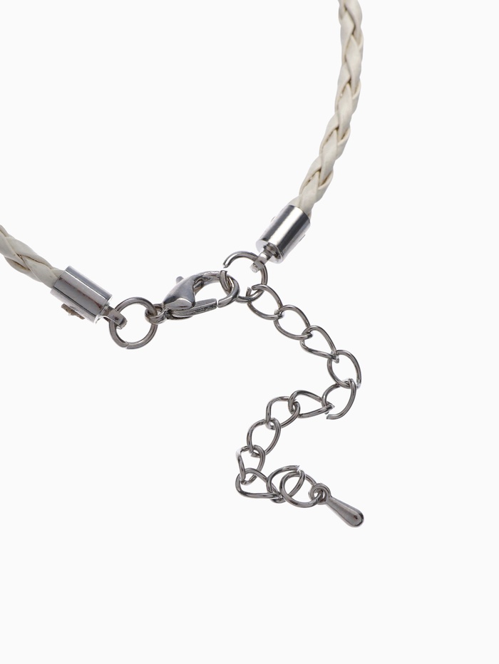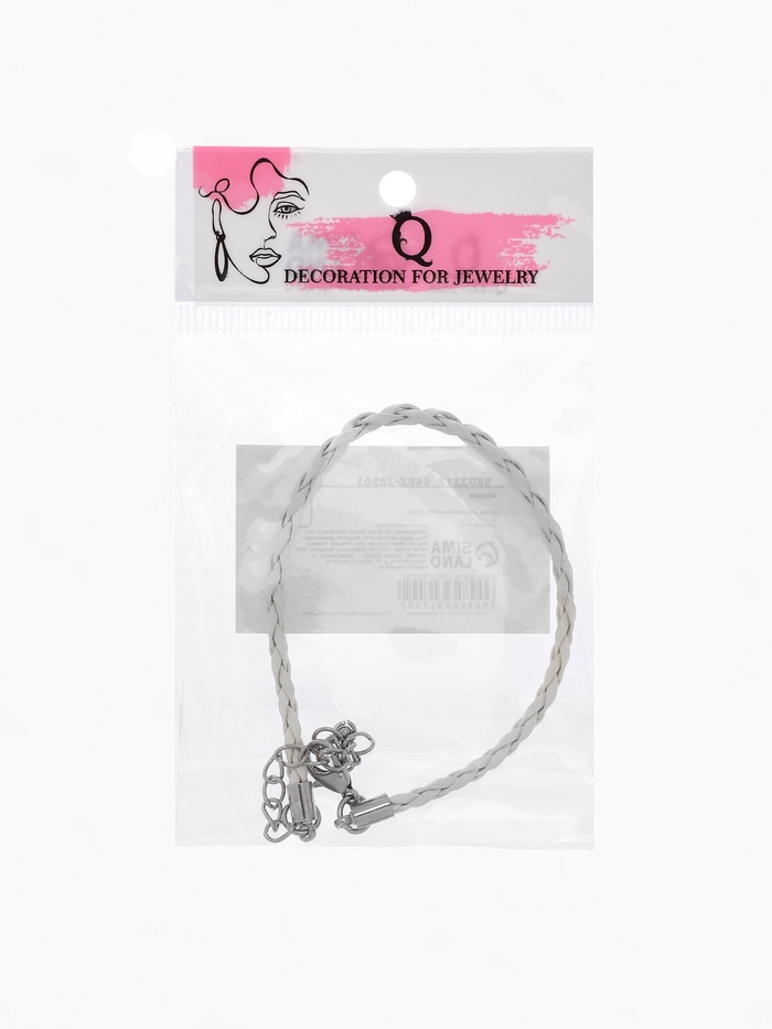 Браслет для шармов «Косичка» кожаный, вощёный цвет белый в серебре, L=20 см с удлинителем — Характеристики