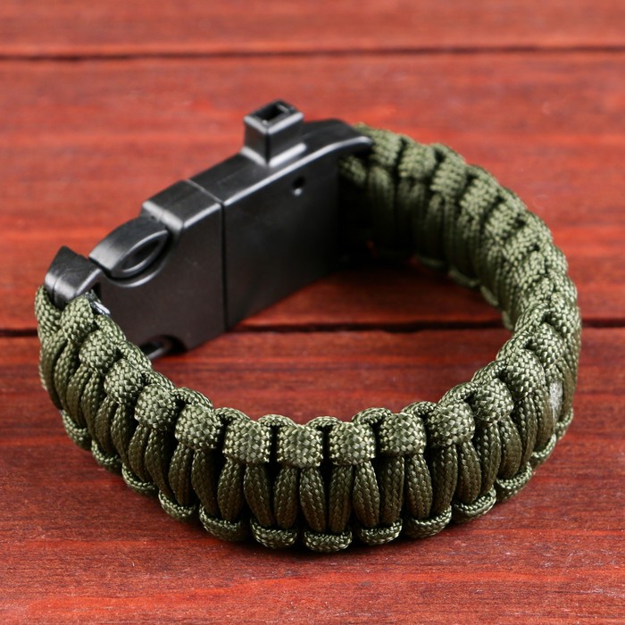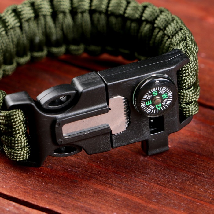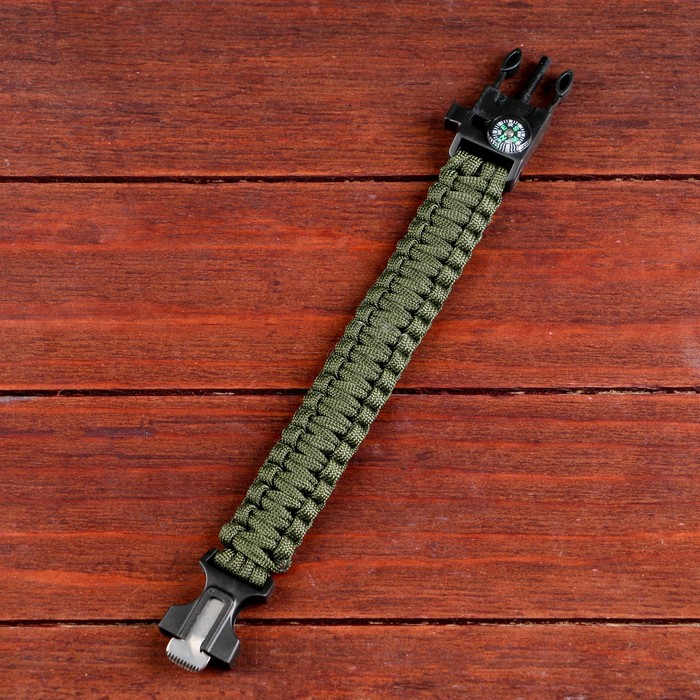 Браслет для выживания 4 в1 (паракорд, компас, свисток, огниво), 25.5×2.5 см, 3 м, тёмно-зелёный — Характеристики