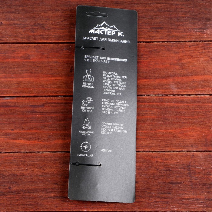 Изделие представляет собой верёвку, сплетённую в компактный аксессуар. При необходимости браслет можно размотать за 30 секунд и использовать в качестве троса, жгута или ловушки.