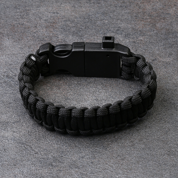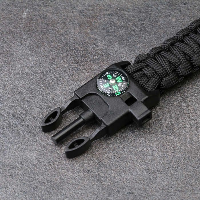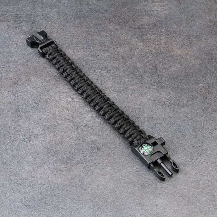 Браслет для выживания 4в1 (паракорд, компас, свисток, огниво), чёрный