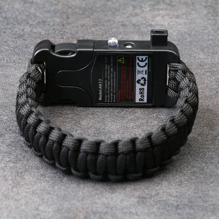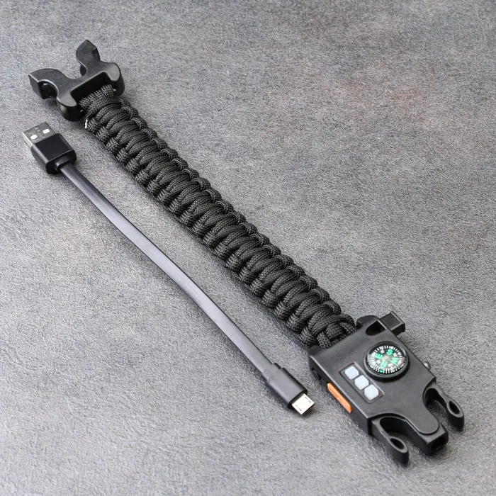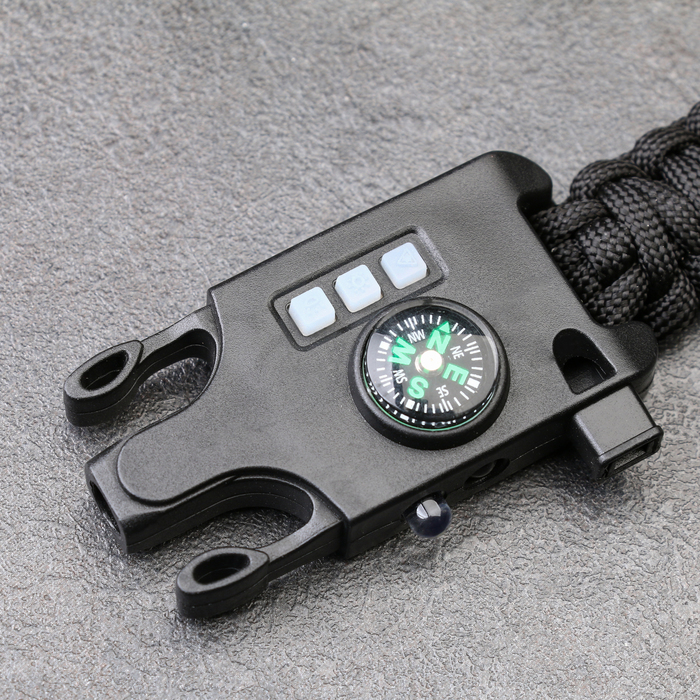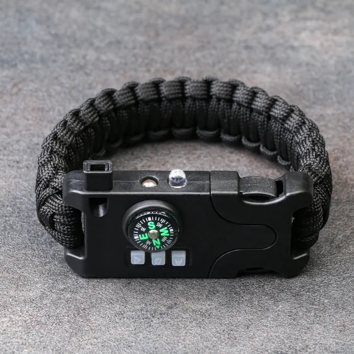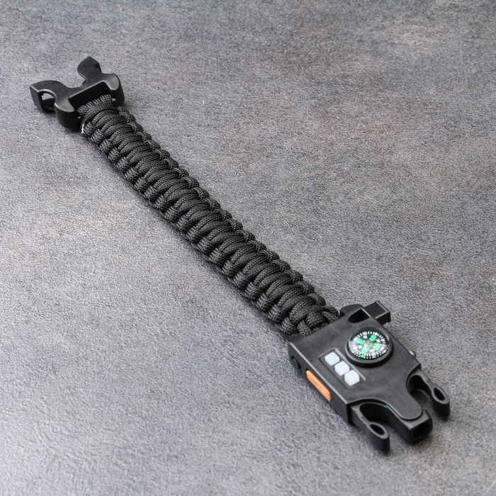 Браслет для выживания 5в1 (паракорд - 3 м, компас, свисток, огниво, фонарь), чёрный