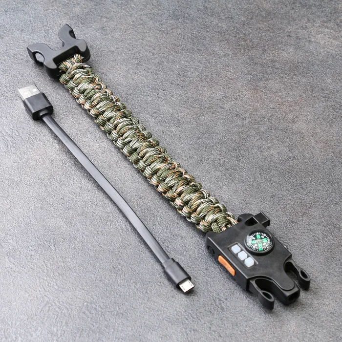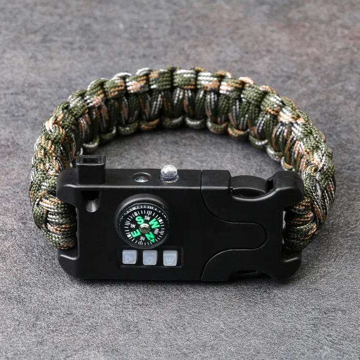 Браслет для выживания 5в1 (паракорд - 3 м, компас, свисток, огниво, фонарь), лесной камуфляж — Характеристики