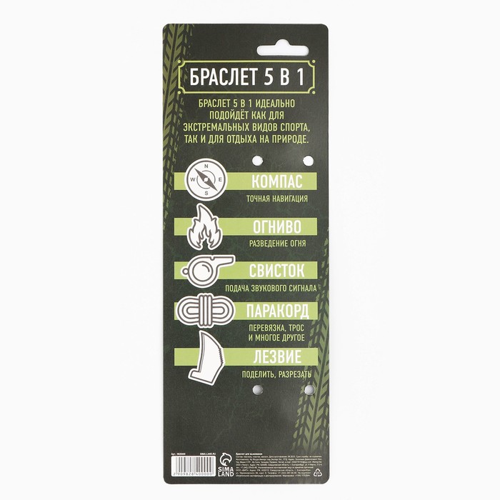 Браслет 5 в 1 идеально подойдет как для экстримальных видов спорта, так и для одтыха на природе. Очень полезная, а иногда и незаменимая вещь в походе, туристических поездках, для выживания, и просто красивый и стильный аксессуар для повседневной жизни. Можно использовать в видах спорта: рыбная ловля, охота, рафтинг, байдарка, каяк, гидроцикл, вейкборд, лодка, лыжи, самокат, ролики, скейтборд, спортивный велосипед.