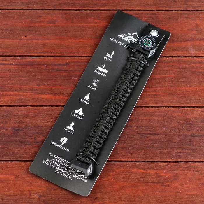Браслет для выживания «Мастер К.», с компасом и фонариком, паракорд 3 м, 24×2 см — Характеристики