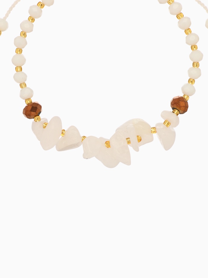 - Чистый белый цвет: основной акцент сделан на светло-белых тонах, создаваемых камнем и основой, что делает аксессуар пригодным практически к любому типу нарядов.