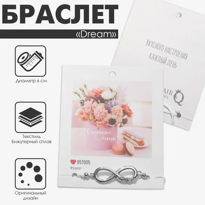 Браслет Dream счастье есть, цвет серый, d=6 см — Характеристики