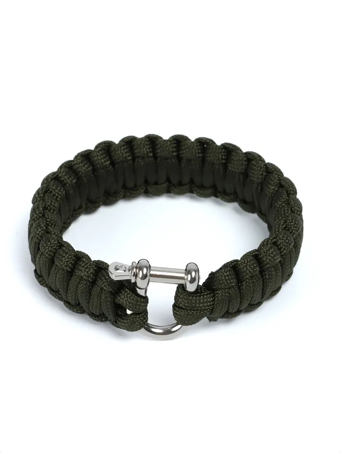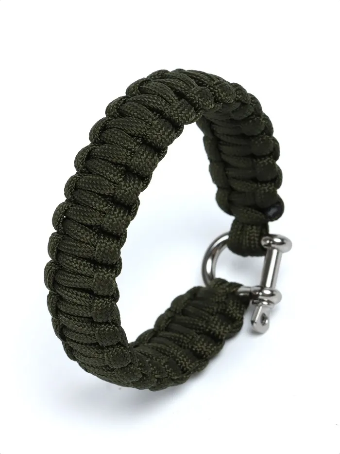 Браслет для выживания 4 в1 (паракорд, компас, свисток, огниво), 25.5×2.5 см, 3 м, тёмно-зелёный