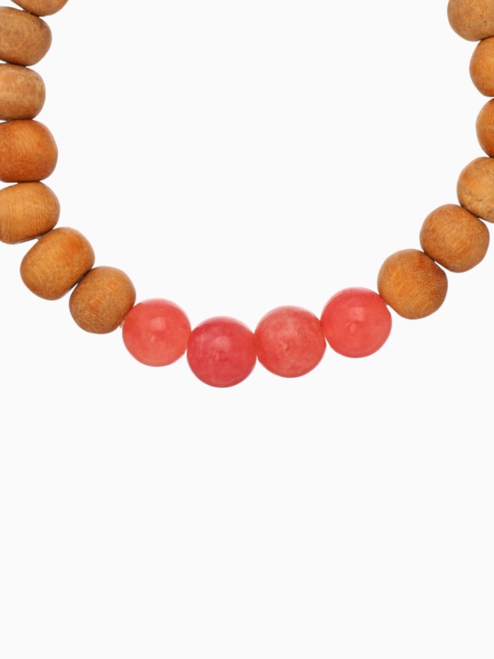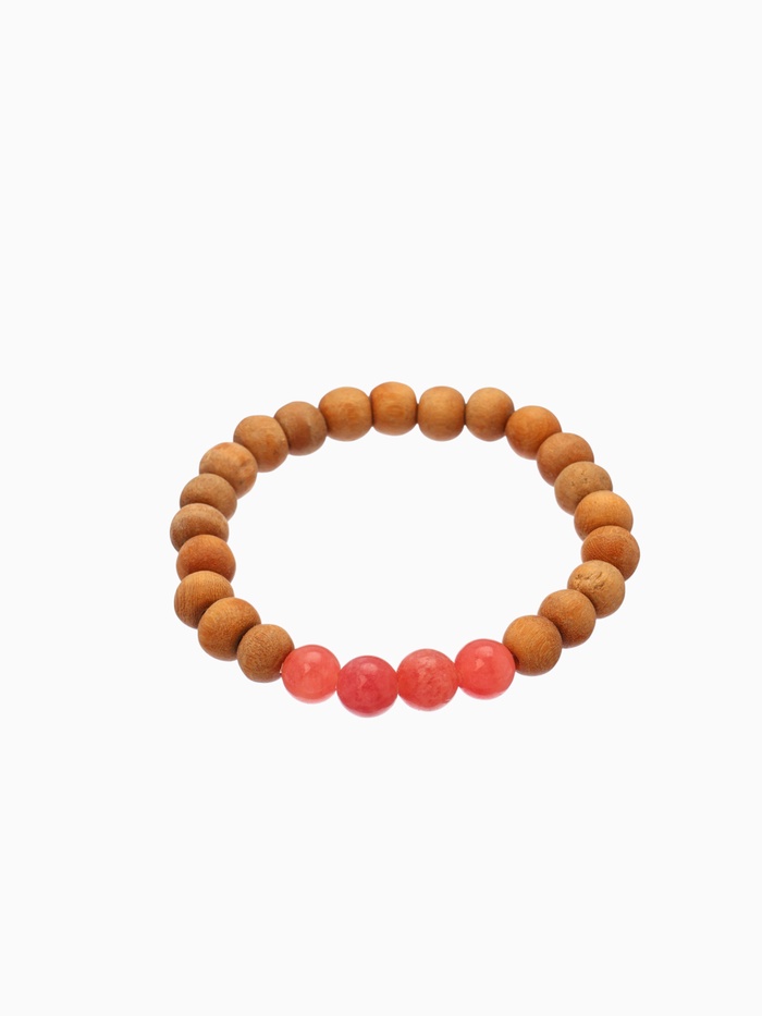 Сандаловое дерево веками использовалось в духовных практиках за его способность умиротворять ум и очищать пространство. Красный агат — камень жизненной энергии: он укрепляет корни, повышает выносливость и помогает преодолевать страх. Вместе они создают браслет, который работает не на показ, а на состояние — мягко, но уверенно.