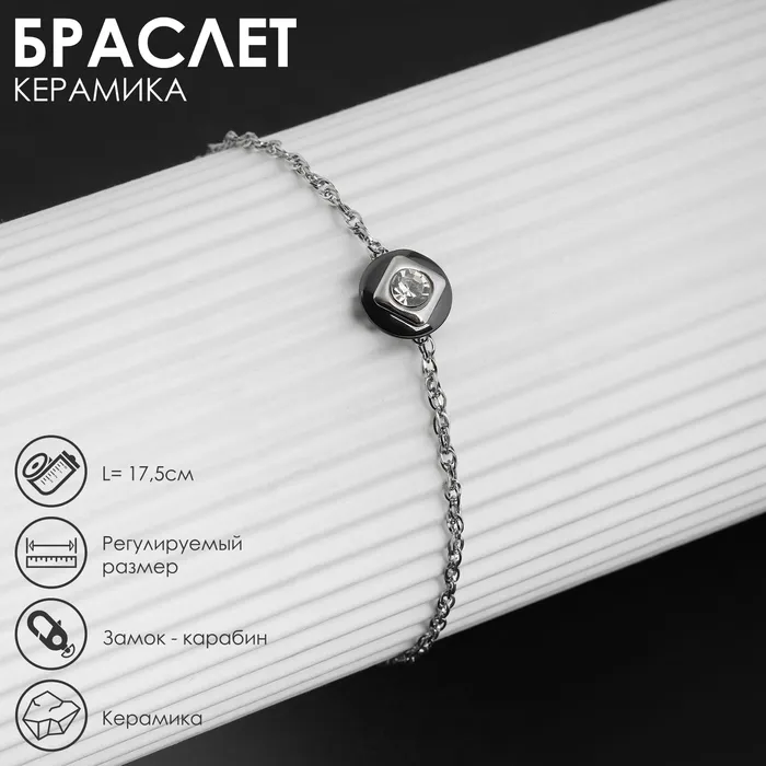 Браслет керамика «Геом», чёрно-белый в серебре — Характеристики