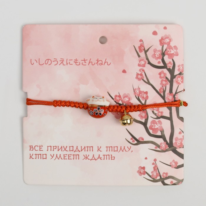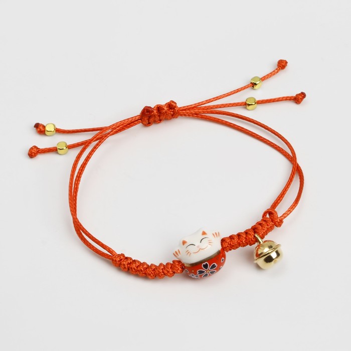 Браслет «Котик» на нити, нэко, красный в золоте — Характеристики