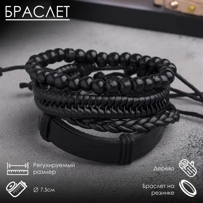 Браслет кожа «Батог», цвет чёрный, d=7,5 см — Характеристики