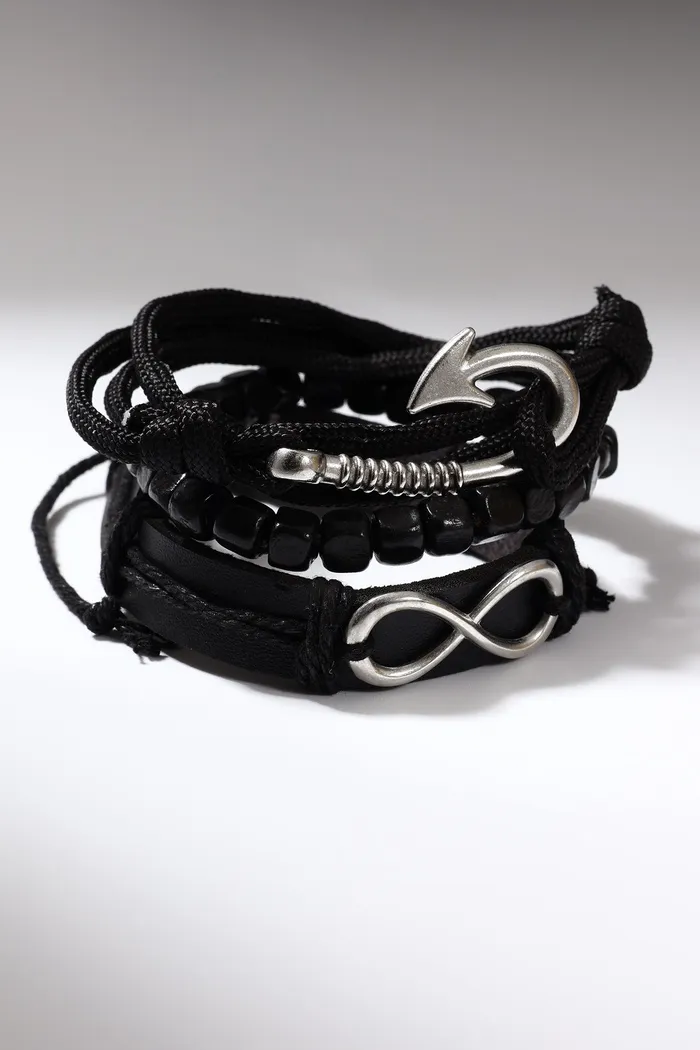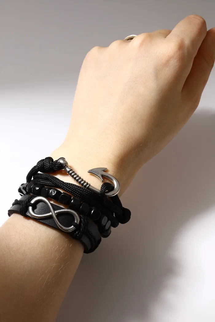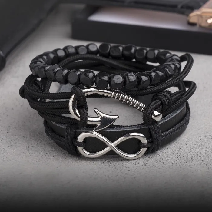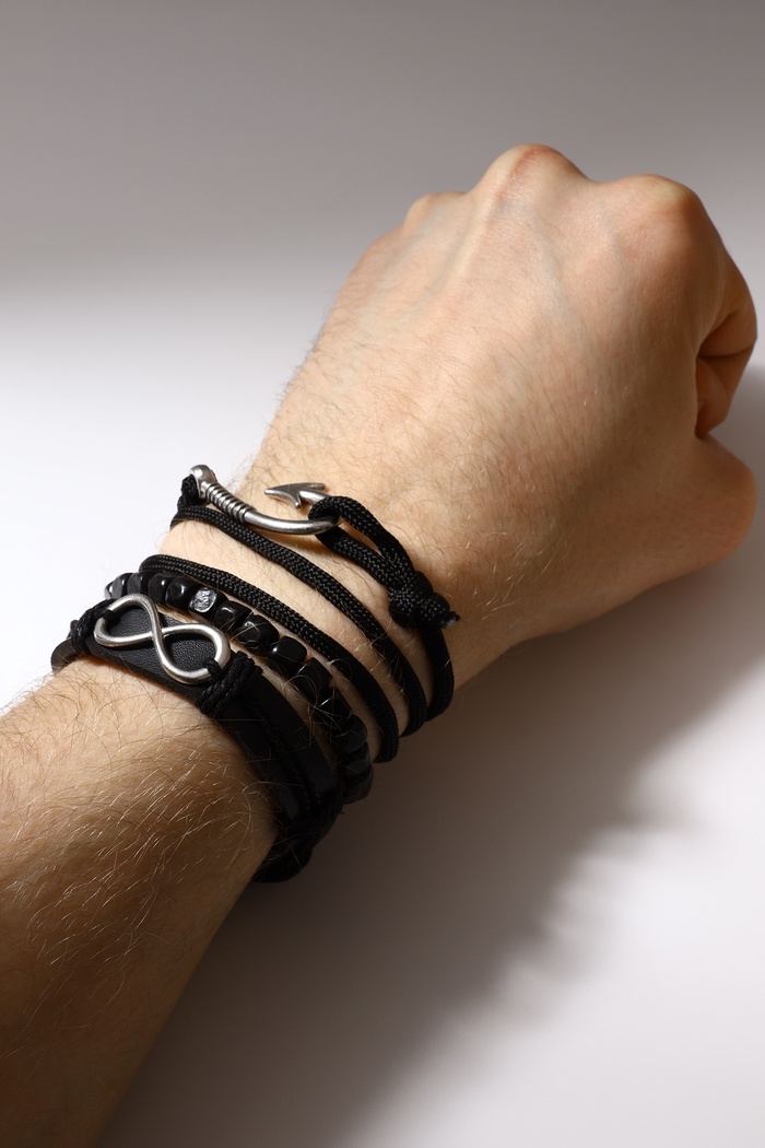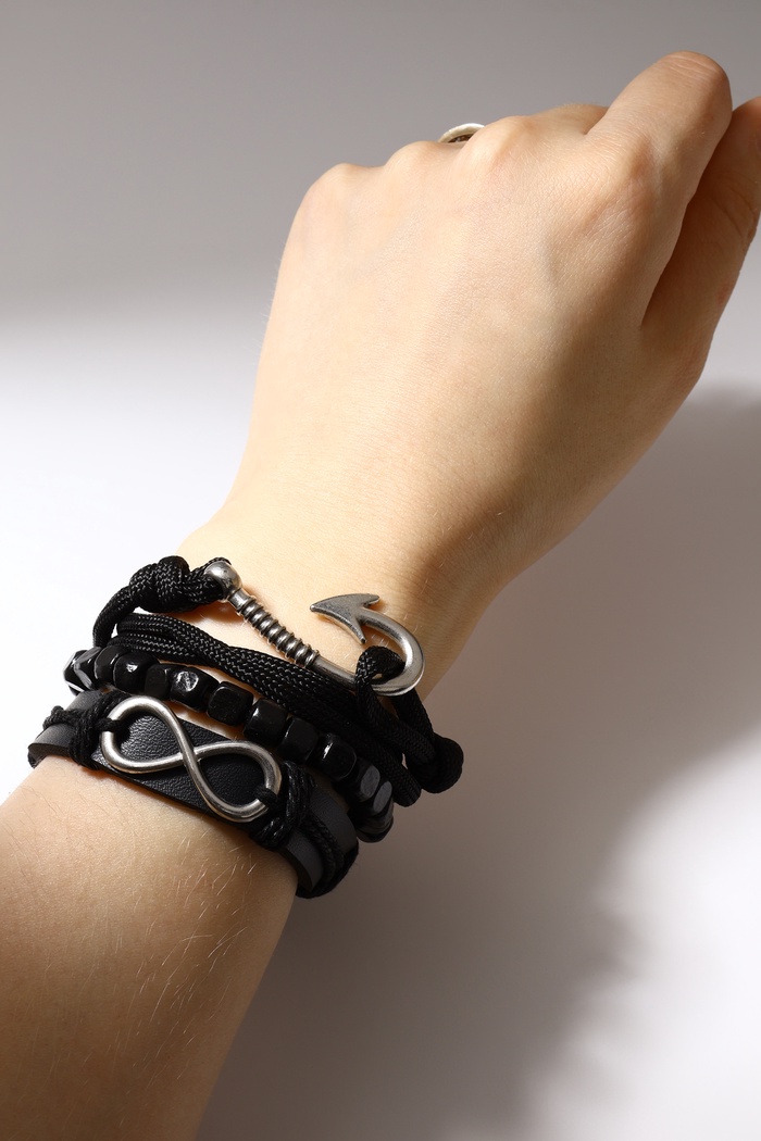 Браслет кожа «Бесконечность» якорь, чёрный, d=7.5 см — Характеристики