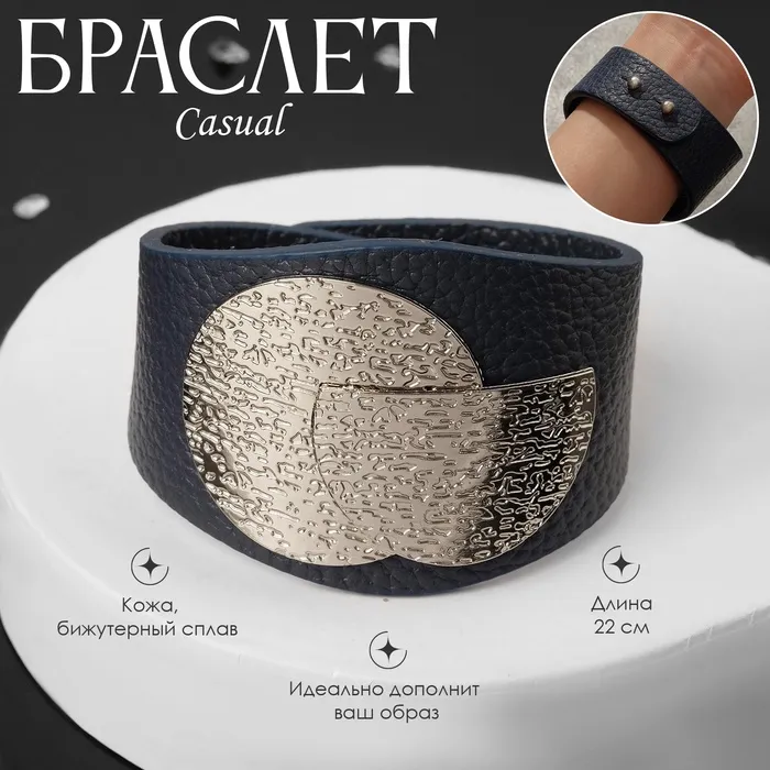 Браслет кожа Casual, цвет тёмно-синий в серебре L=22 — Характеристики