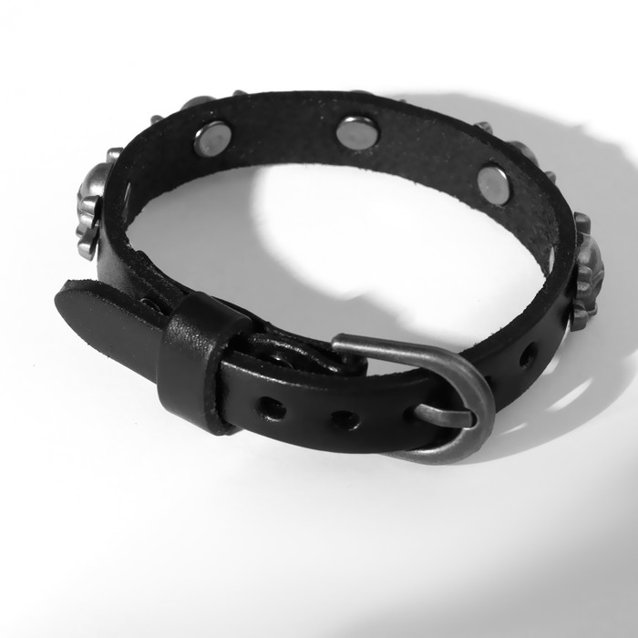 Браслет кожа «Хардкор» черепа пираты, цвет чёрный в серебре — Характеристики